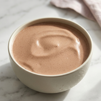 Chocolate, banana, and peanut base with 24g plant-based protein, fresh…